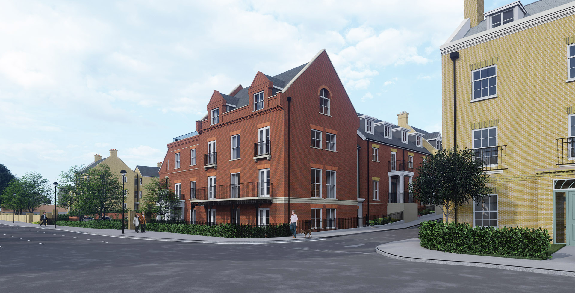 Walkable layout with green spaces and low-impact parking.
