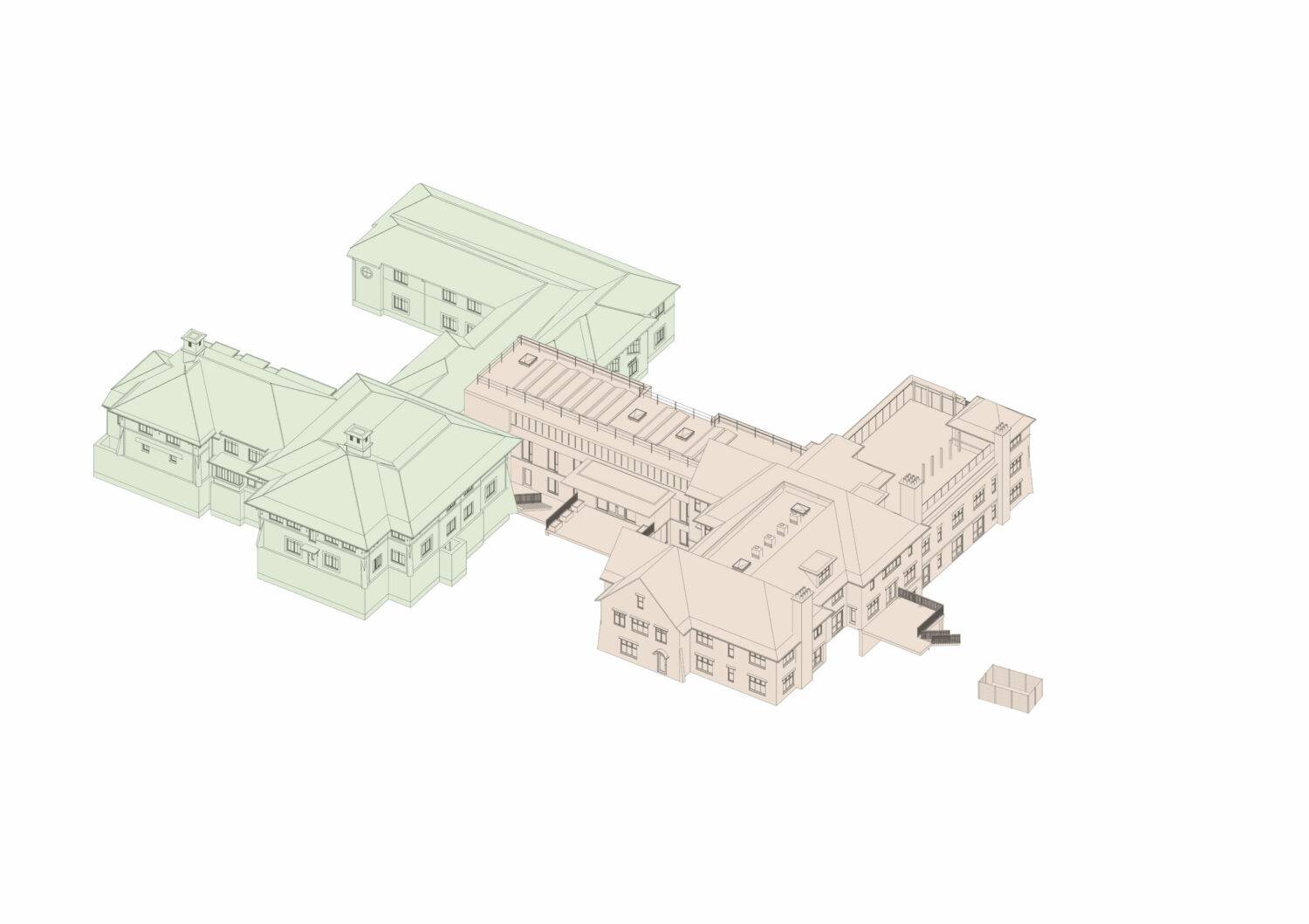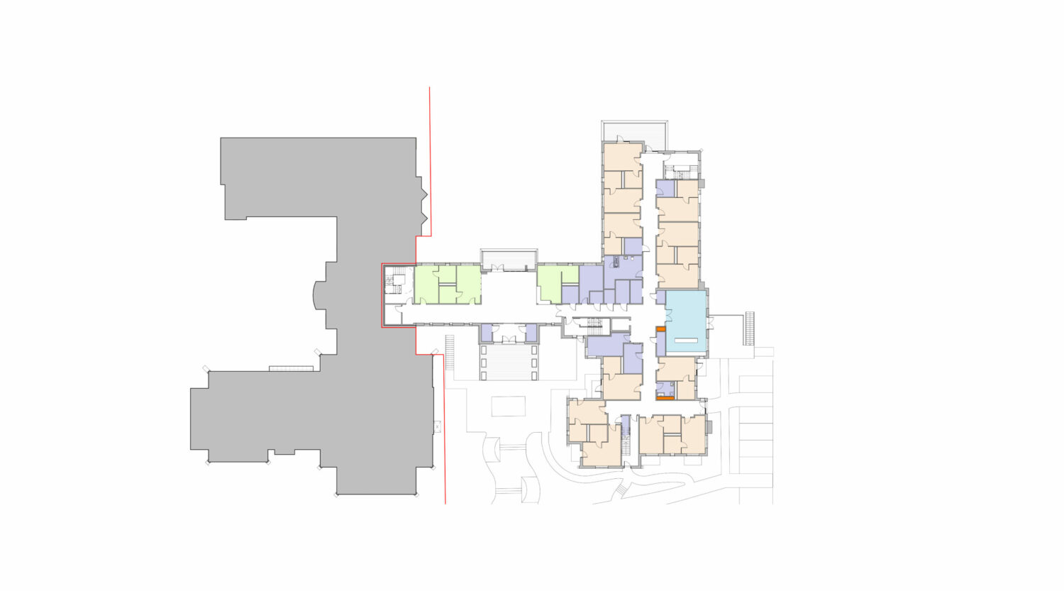 Braemar Lodge is a successful care home ran by Colten Care. We were asked to come up with an efficient way to extend the care home and bring it up to modern standards. Our solution was to connect into the existing care home mid way along the existing building, where there was a glazed link and we could connect directly into the circulation of the building. Our new wing can then become part of the home without causing the kind of disruption to the existing care home as might be expected from such a major extension.