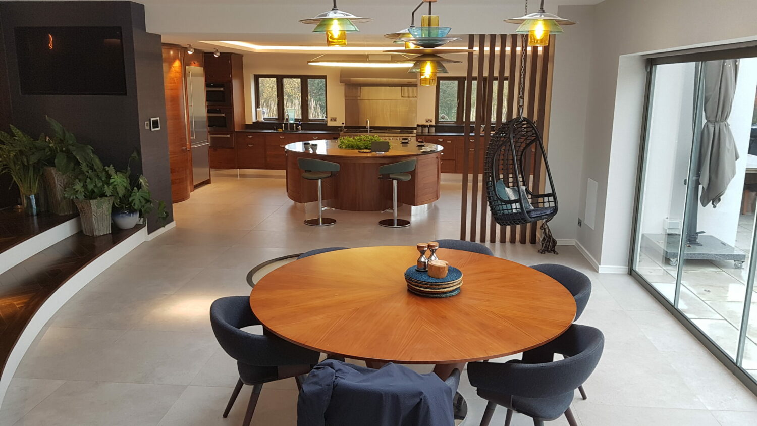 The client brief from the outset was to transform, extend and upgrade the original an uninspiring bungalow into a versatile, spacious and uplifting family home, capitalising on the expansive views over its land. A key part of the project was to create an im-proved external setting, through high quality soft and hard landscaping, incorporating generous external entertaining spaces.