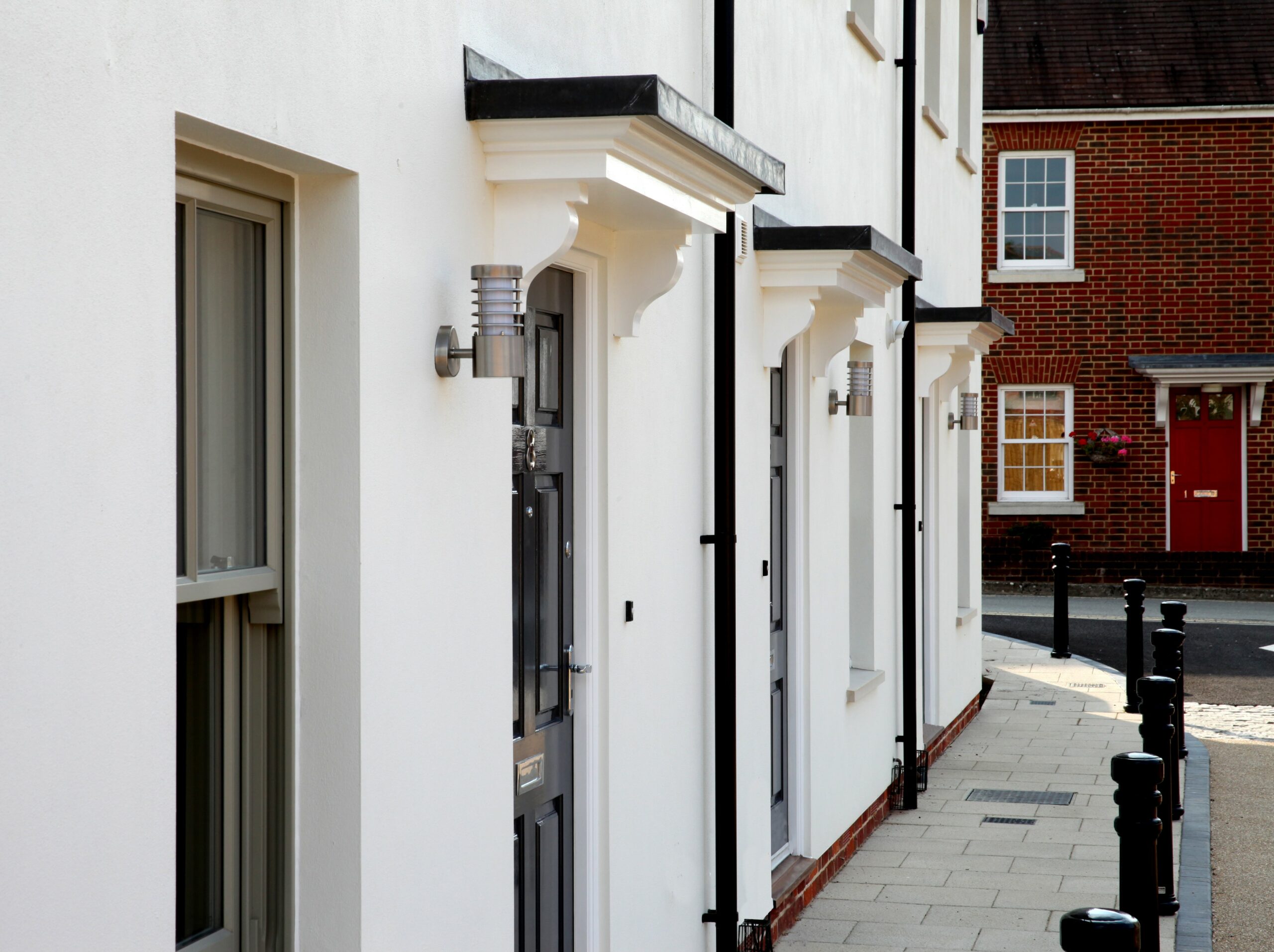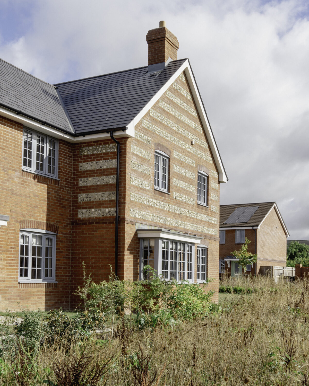 The houses pick on the Dorset vernacular with simple building forms and rich brick detailing.
