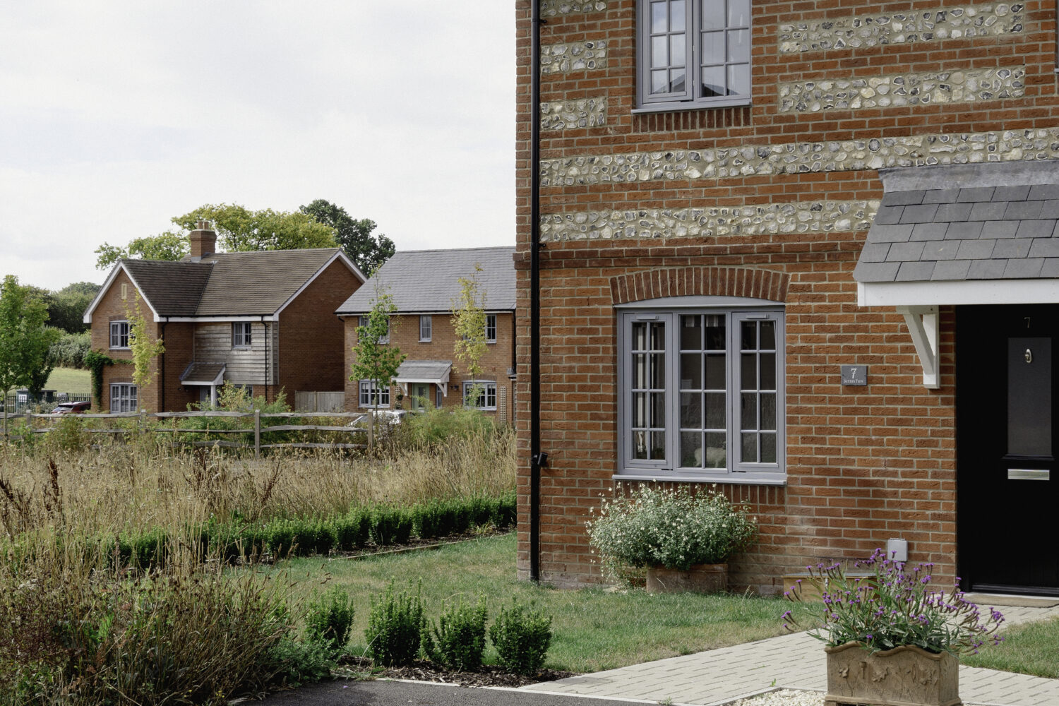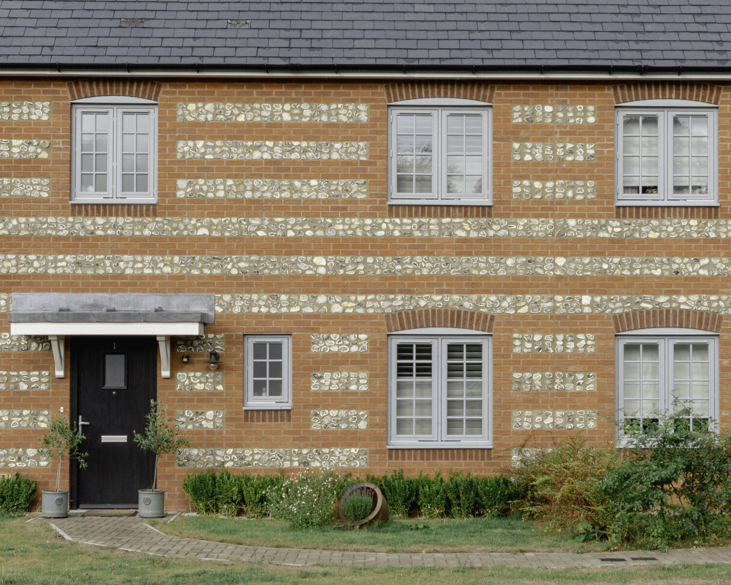Local character is reflected in the details, such as arched brick window heads, simple casement windows with glazing bars, flint and brick banding, and varied rooflines that echo the gentle rhythm of the village streets. The houses are purposefully modest in form, free from unnecessary projections, with gable dormers and rich brickwork adding depth and texture.